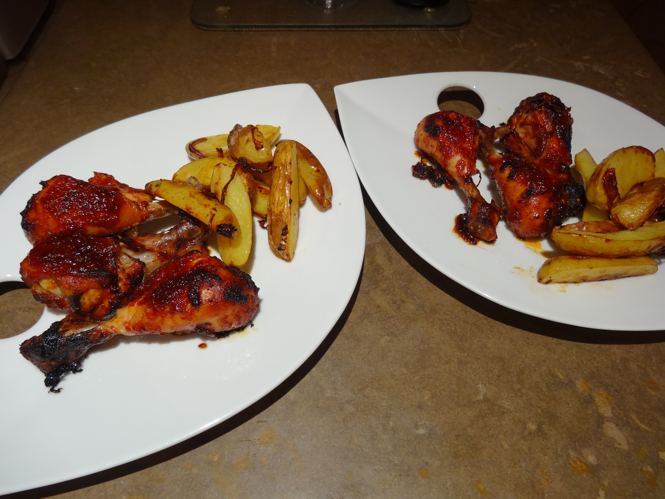 Remuez les pommes de terre de temps en temps et retournez les pilons en les couvrant de marinade. A partir du moment ou vous mettez les pommes de terre comptez 3/4 d’heure à 1 heure de cuisson en fonction de la taille des morceaux!